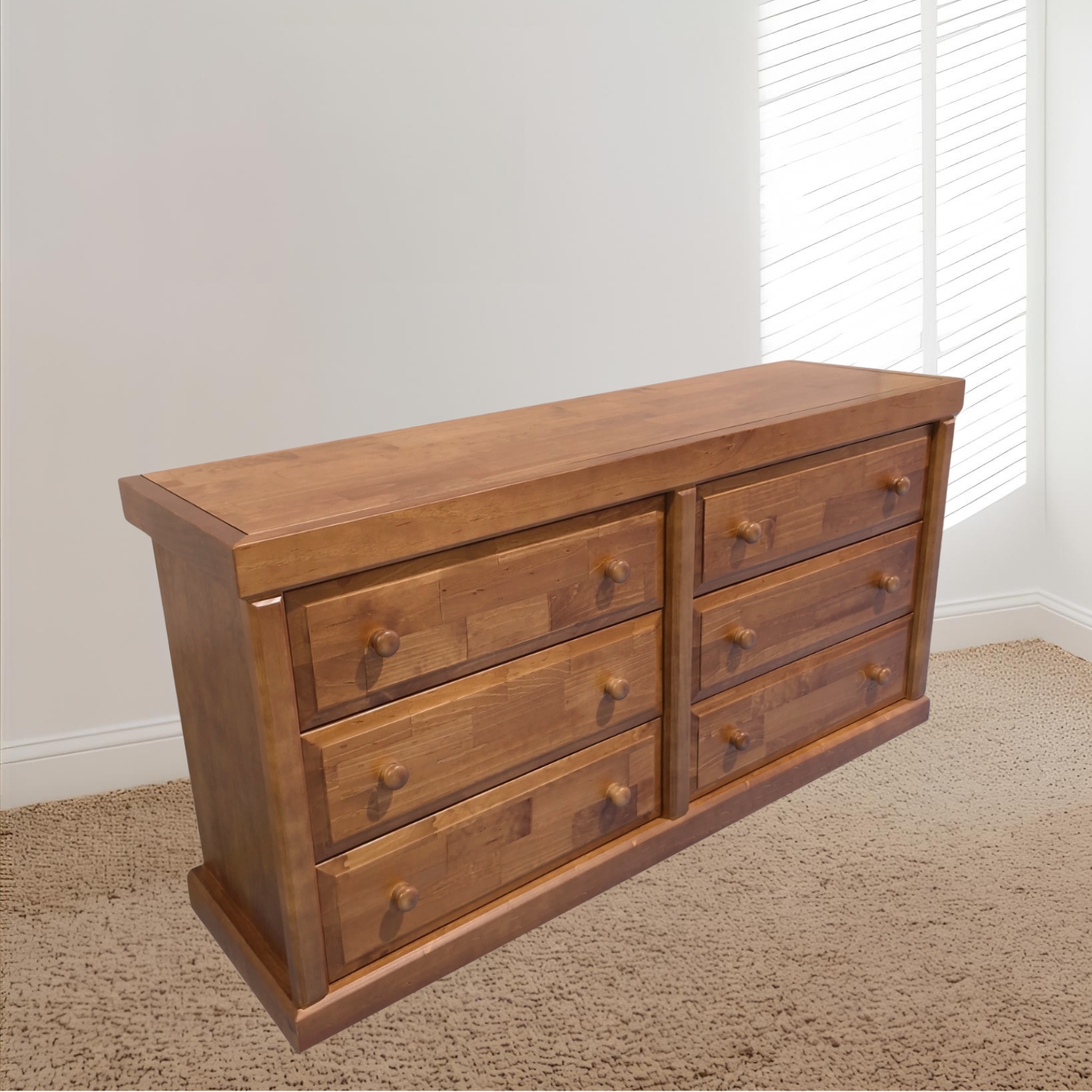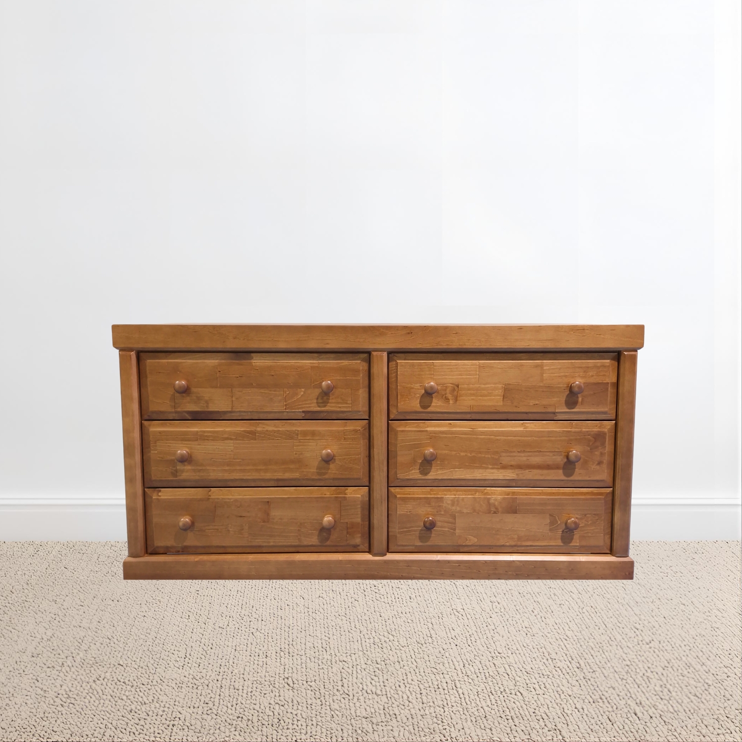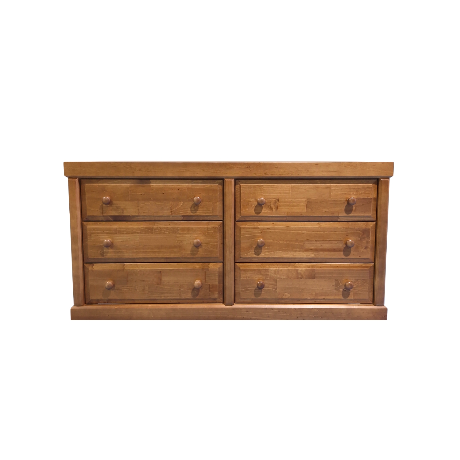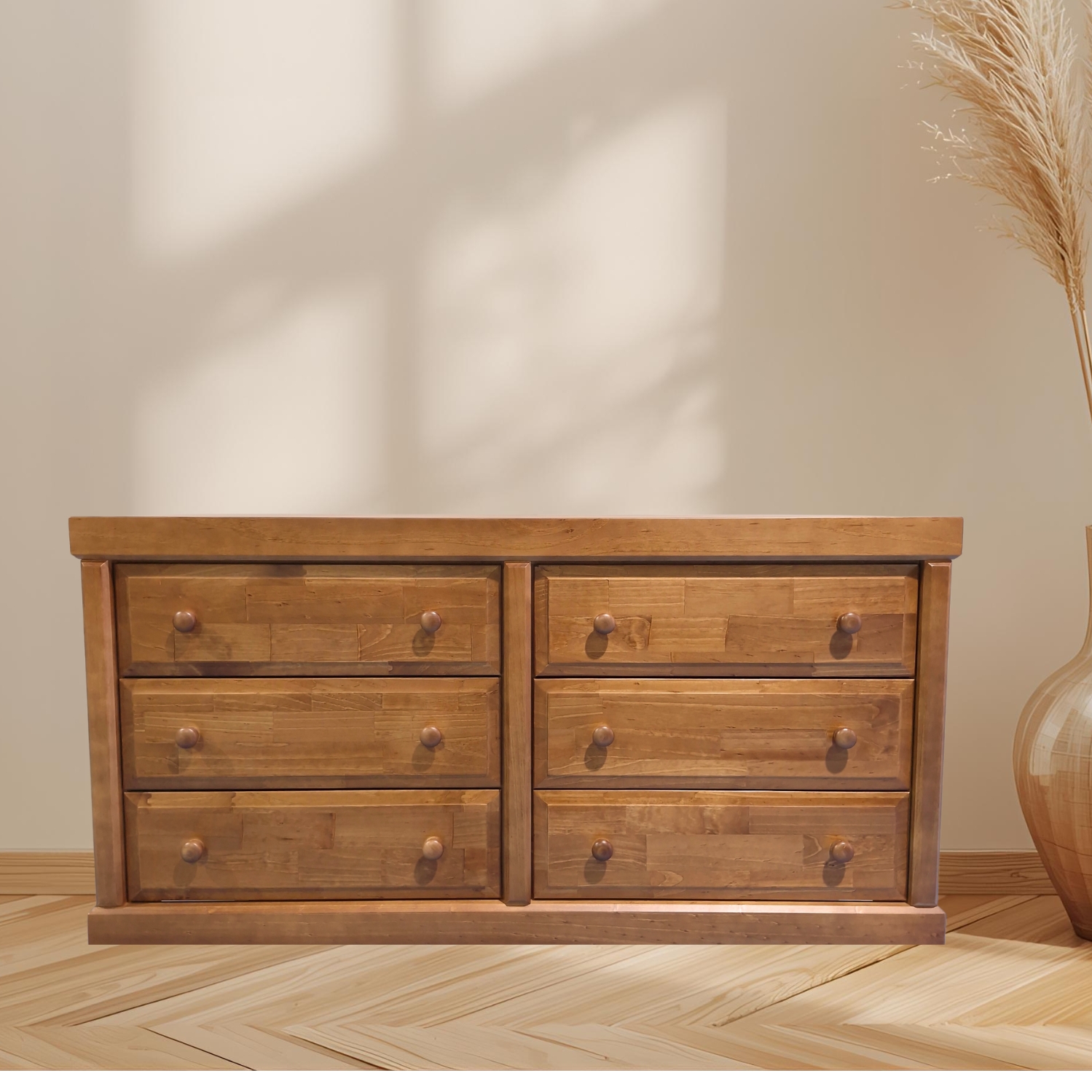 Cómoda Victoria 6 Cajones Pintada Color Nogal con cajones de terciado enlacados, tirador de madera torneado por artesanos de Temuco. Mueble armado muy firme
