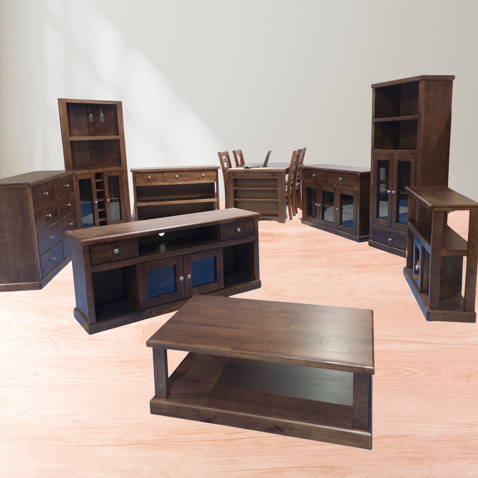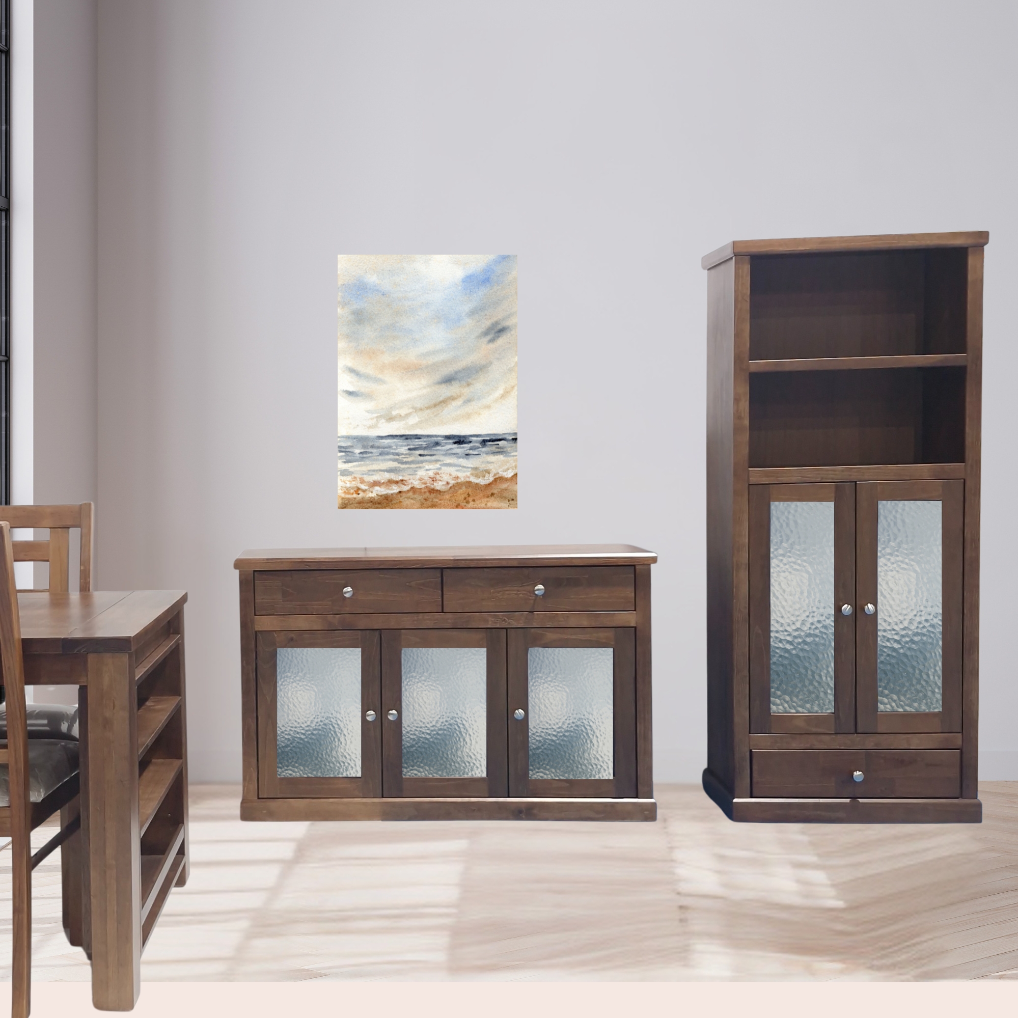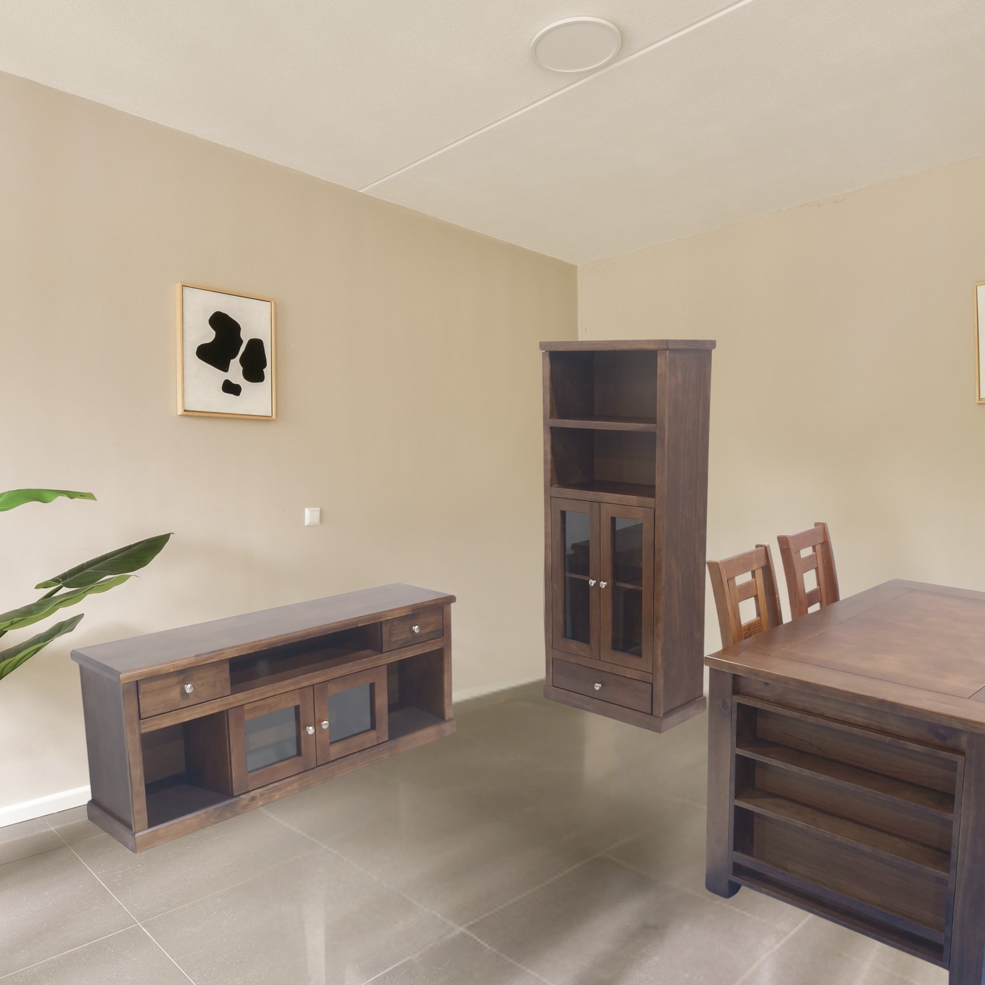 - Acabado vidriado pintura de color café chocolate para realzar las características naturales de la veta de la madera.