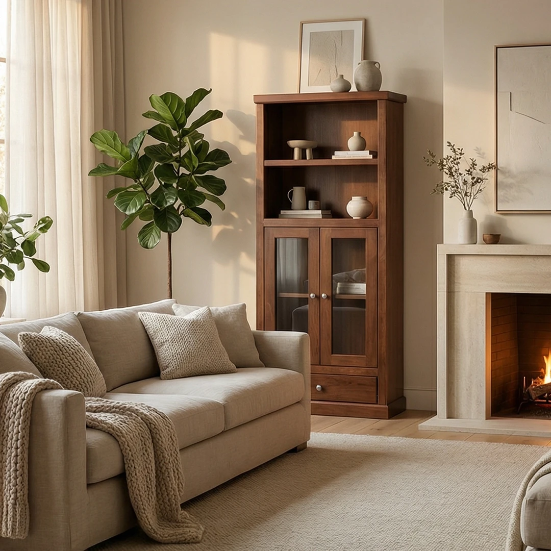 Linea Marsella: Defina su comedor con función y estilo confiables. Esta Vitrina de comedor se ubica cómodamente en la intersección de la estética moderna. Los encantadores elementos arquitectónicos y el acabado vidriado de color café chocolate reflejan su carácter cálido y acogedor. Ofrece mucho espacio de almacenamiento en sus gabinetes espaciosos.